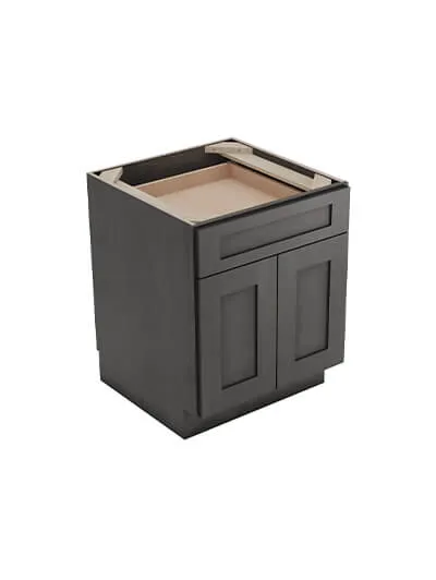 RTA-Ready to Assemble Greystone Shaker 2 Door 1 Drawer Base Cabinet All plywood construction box with a solid wood face frame and door (some styles use MDF door and center panel to reduce cracking and stretching)