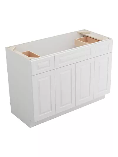 The GW-S4821B12D-34-1/2″ : Gramercy White 48″ Drawers (2) Vanity is perfect for those who want to add a touch of elegance to their space. The full overlay door and finished interior create a luxurious feel, while the concealed 6-way adjustable soft close door hinges add a touch of practicality. The undermount, full extension drawer with soft closing feature is both functional and stylish, while the face frame construction and 1/2″ plywood box construction ensure durability. This vanity is also Carb2 compliant and Green Guard Gold certified, so you can rest assured knowing that it is low in chemicals and emissions.