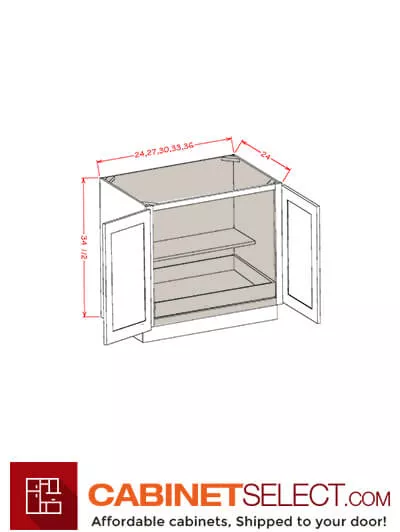 RTA-Ready to Assemble Shaker Antique White Double Full Height Door One Rollout Shelf Base Kit All plywood construction box with a solid wood face frame and door (some styles use MDF door and center panel to reduce cracking and stretching)