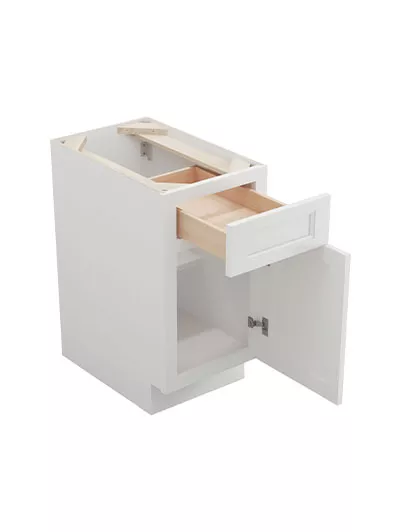 The TW-B15: Uptown White 15″ 1 Drawer 1 Door Base Cabinet is a high-quality piece that will add a touch of elegance to your kitchen. The cabinet features a full overlay door, finished interior, and 5-piece matching drawer front. The concealed 6-way adjustable soft close door hinges and undermount, full extension with soft closing feature make this cabinet a perfect choice for any kitchen. The face frame construction and 1/2″ plywood box construction make the Uptown White 15″ 1 Drawer 1 Door Base Cabinet a durable and long-lasting choice for your home.